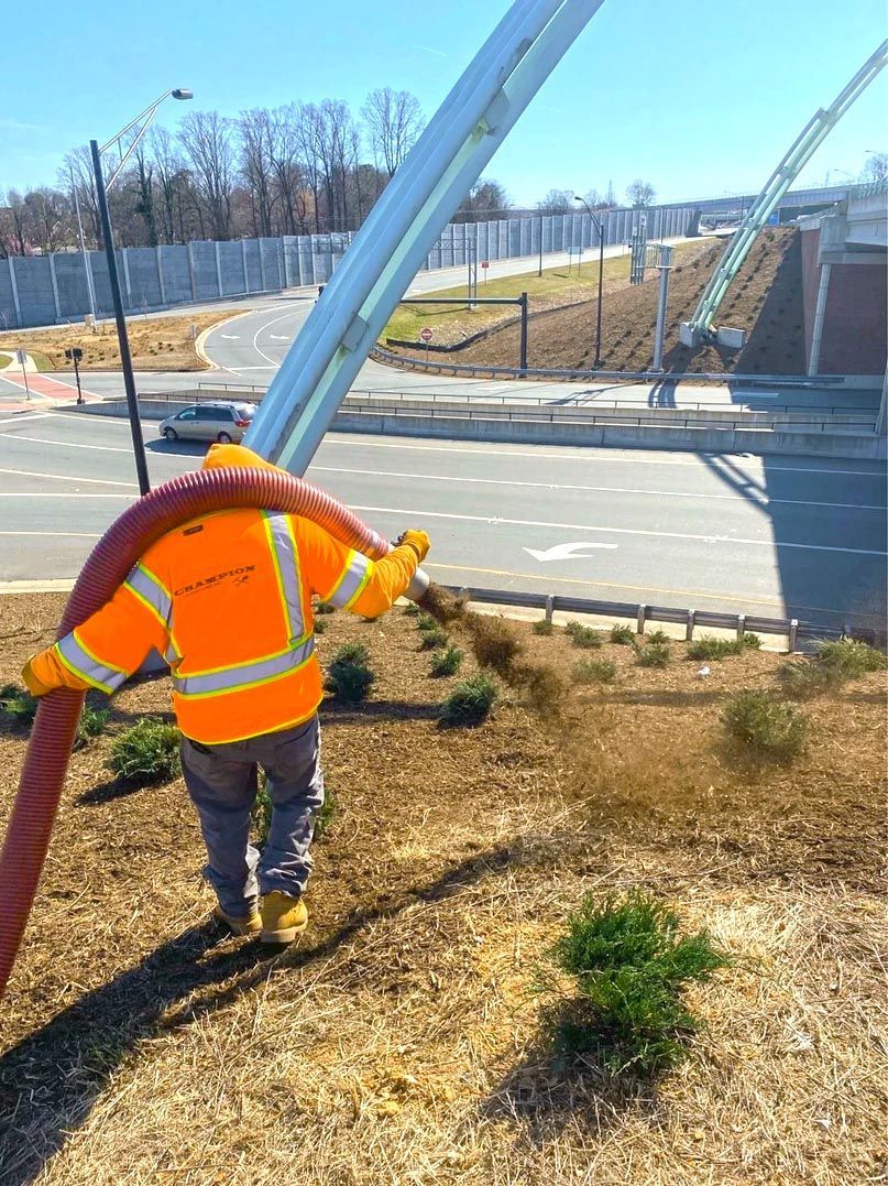 Champion Mulch and Materials is a fully licensed and insured material placing company specializing in mulch blowing for a wide range of customers with our EB-60 mulch blowing truck. Champion Mulch and Materials is a sister company to Champion Landscapes. This truck enables us to place mulch in a more efficient and productive manner. This will save on labor costs and wasted product. Champion Mulch has a vast network of mulch and compost vendors that provide superior products at a very competitive price. To schedule a quote for one of our many services, click the button below to go to the website contact page.
